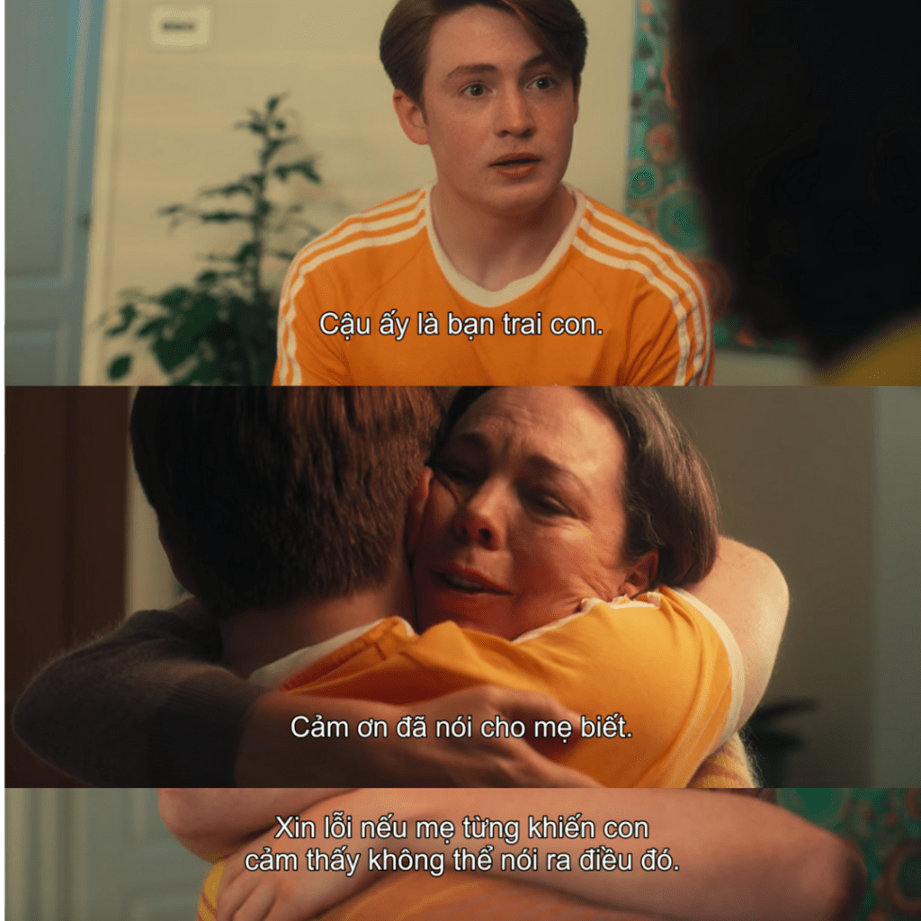 Sự thấu hiểu và dịu dàng mà người mẹ dành cho Nick khi nhìn con trai mình lấy hết can đảm để come out thực sự là cái kết quá đẹp và quá ấm lòng cho mùa 1. Mình biết cái ôm này chính là niềm mơ ước của rất nhiều người trong cộng đồng LGBTQ+, trong đó có cả những người bạn của mình. Rồi mình lại nhớ đến ước mơ nhỏ nhoi ngốc xít của mình hồi cấp 3, đó là ước gì lên đại học mình sẽ có bạn thân là gay. :))) Dở hơi thế đấy =)) Không ước người yêu, không ước học bổng, lại đi ước có gayfriend. Rồi điều ước của mình thành sự thực, và nó còn tuyệt hơn cả những gì mình mong đợi. Đại học đem đến cho mình rất nhiều chiến hữu xịn sò, những người mà mình muốn sát cánh cùng họ, không chỉ trên giảng đường, mà còn trên cả chặng đường đời sau này, trong số đó có rất nhiều anh em bạn dì LGBTQ+. Xem phim xong, mình lại muốn gặp mọi người, gửi đến họ một cái ôm thật chặt và nói rằng “Cảm ơn bác rất nhiều vì đã xuất hiện và khiến cuộc đời của tui trở nên tuyệt cú mèo như zị nhaaa”. ❤
